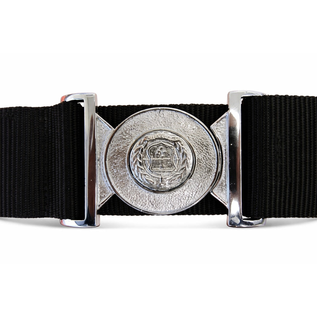 A polypropylene webbing belt with a customisable chrome buckle is a smart uniform accessory designed for military, ceremonial and formal dress use.