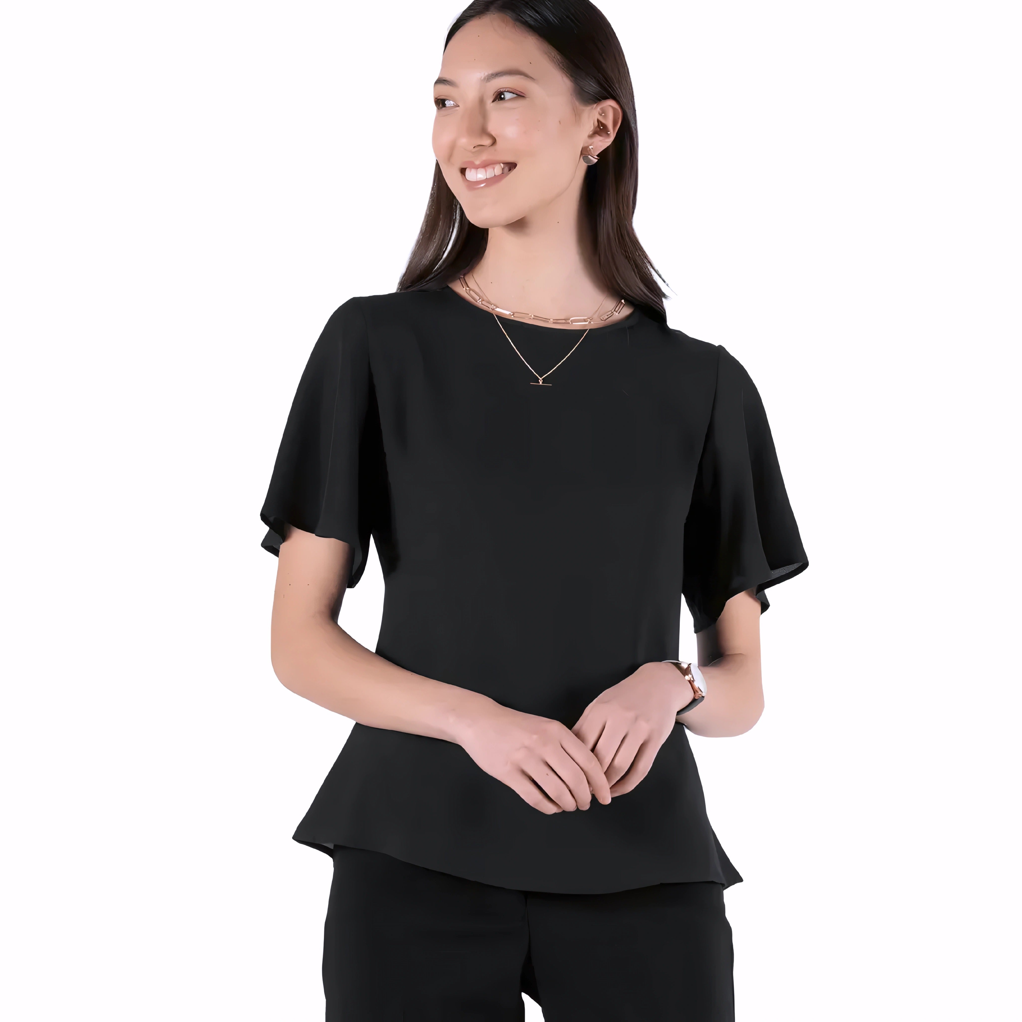 - Fluted sleeve and flared hem make it a staple piece in any wardrobe.